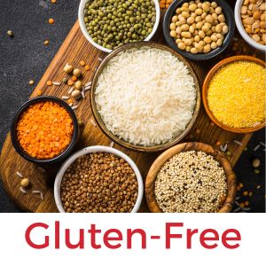 Any non-grain foods, in theory. So FRESH fruits, vegetables (green and starchy), legumes (beans, peas, chickpeas, lentils), nuts and seeds are all fair game – provided they aren’t breaded or in contact with any wheat, rye or barley or their byproducts. Some grains are fine, like oats, rice and corn, as are similar products like quinoa and millet.